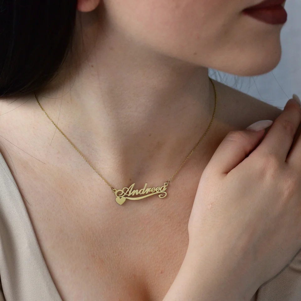 Lantisor cu nume model inima aur galben 14k