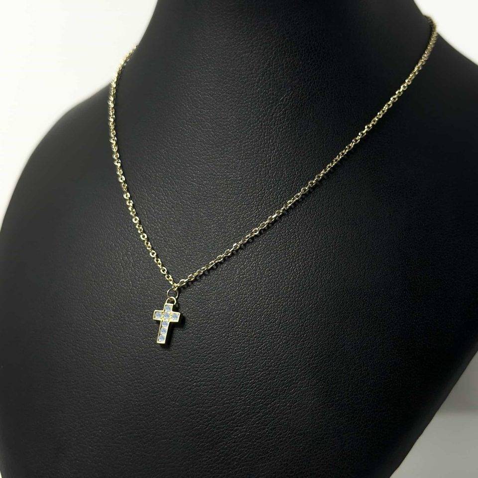 Lantisor cu cruce dama aur galben 14k