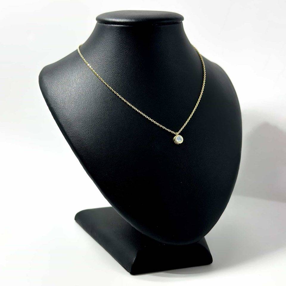 Lantisor aur dama cu floare aur galben 14k si piatra zirconiu